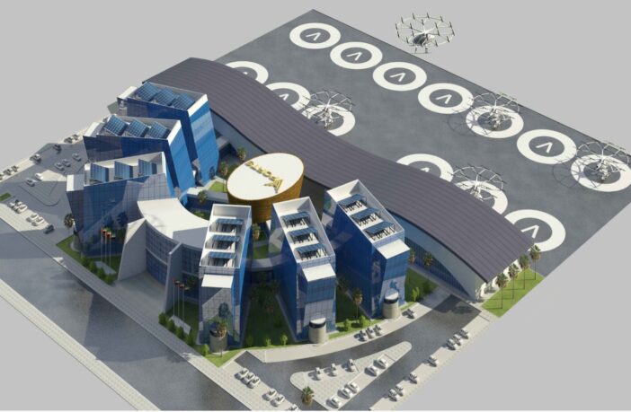 Within Dubai South specifically, VPorts chose a location close to Al Maktoum Airport’s helicopter operation. “We believe that by 2030, there will be a lot less helicopter traffic than today. By 2040, we expect that eVTOL will become more user-available than helicopters and so we plan to take over all this land,” Chebil comments. Overall, almost half of the 37,000m2 of VPorts-occupied land (18,000m2) will be for vertiports and hangars, and almost 2,000m2 is available for the Vertiport Operation Control Center (VOCC). The remaining 17,000m2 is intended to be used for the offices and other developments.