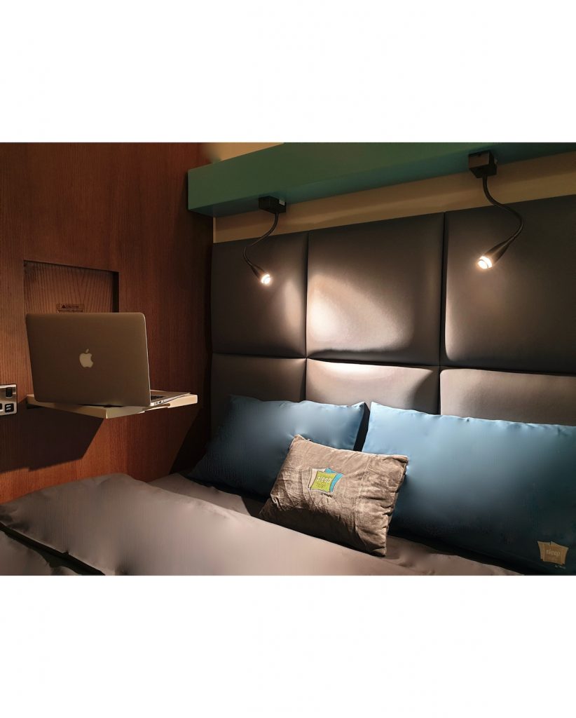 - Sleep Cabins (five available): Three double bed cabins with an optional pull-out bed for a child of up to 115cm in height and two bunk bed cabins are available. These small but stylishly designed spaces are soundproof and have air conditioning, as well as main, ambient and reading lights, an alarm clock, a coat hanger, a mirror and tray table.