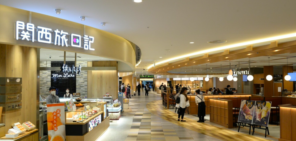 The area was redesigned around a new lounge, new shops and restaurants. The offerings were chosen to celebrate the flavors of Kansai and improve the functionality of the airport’s commercial spaces.