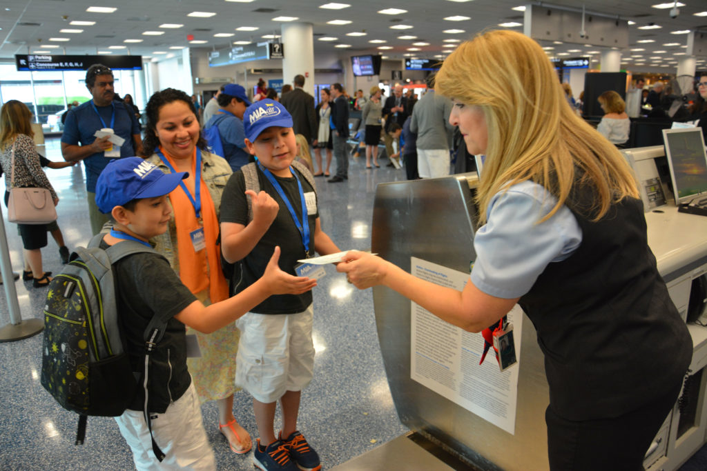 Families who attended the MIAair tour practiced entering the airport, checking in and receiving boarding passes, going through a Transportation Security Administration (TSA) checkpoint, and boarding an airplane. At the end of the tour, children receive a MIAair certificate of completion and travel resource materials. The MIAair program also simultaneously provides a learning experience for airport, airline and TSA workers, in how to better serve travelers with disabilities.