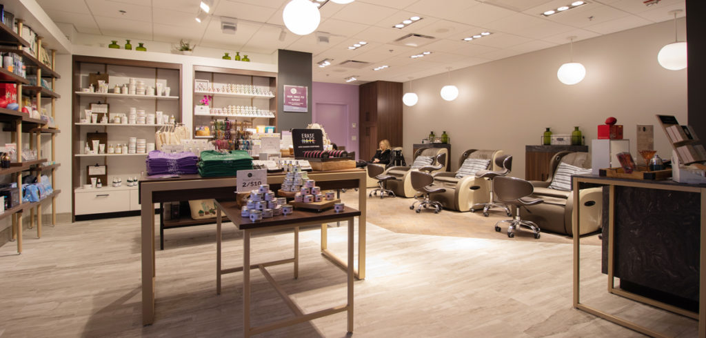 Marshall Retail Group’s second concept is a joint venture with Angela Mitchell Hill, founder and creator of NāSah’s Nurture~Nature. The full-service nail salon and spa offers natural products and services and a selection of beauty and gift brands.