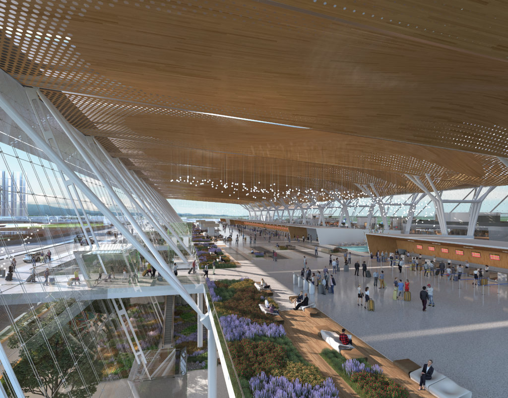 CRTKL says the terminal will be planned with passenger comfort at its core, for example through ensuring there are multiple access points and interior spaces that feature plenty of natural light. To reach its goal of net-zero, it says multiple environmental strategies have been put in place throughout the airport to reduce energy use by 60% and the carbon footprint by 90%.