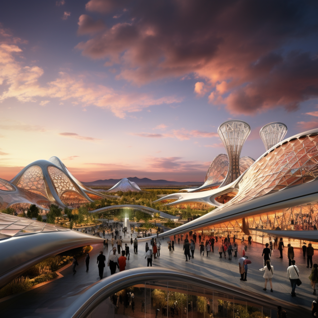 Currently, Chicago O’Hare Airport in Illinois features distinct terminals, each characterized by its own architectural style, linked to departure gates through spacious concourse areas. By 2050, AI predicts that O’Hare could be almost unrecognizable, expanding upward and outward. The remarkable transformation sees the airport become a sky-high structure, complete with domes and expansive internal roads, providing seamless connectivity across the airport.