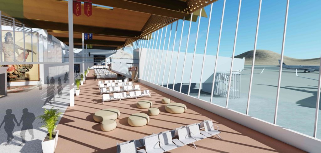 Additionally, it says the terminal is being designed to blend with the area’s existing landscape; the design of the building will reflect the philosophy of ancient Buddhist wisdom entwined with a modern ethos, incorporating Buddhist design elements in the overall look and feel of the building.