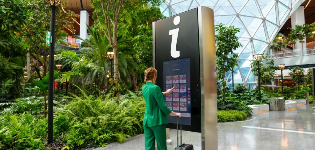 Digital concierges located at Orchard, the airport’s indoor garden, include information about retail and food and beverage offerings, flight information, relaxation and rejuvenation options and attractions at the airport. The airport has also introduced passenger digital assistance kiosks located at the North Plaza of the airport and around the LampBear artwork.