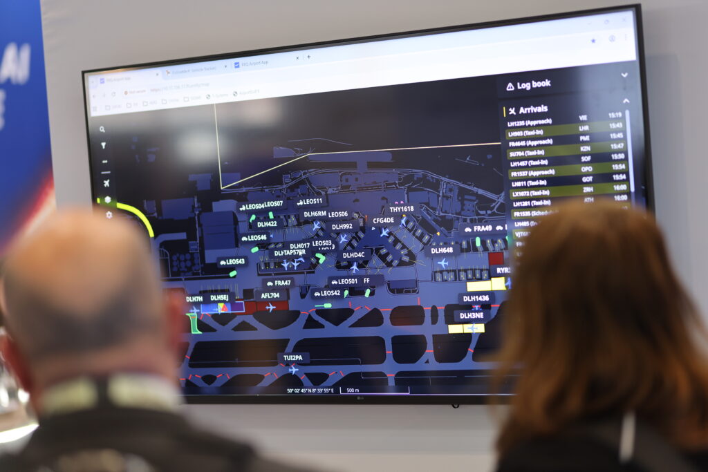 Elsewhere, exhibitors highlighted how data, AI and spatial intelligence are becoming central to airport decision-making. Assaia introduced StandManager, an AI-powered solution designed to optimize gate and stand allocation using live operational data. ADB Safegate presented its Intelligent Apron approach, aimed at connecting airside systems into a unified operational network. Veovo and Emu Analytics used the event to announce a partnership to bring geospatial intelligence into airport operations, while Outsight, SOS Lab and Jetpack all showcased tools designed to improve forecasting, queue monitoring and flow management.