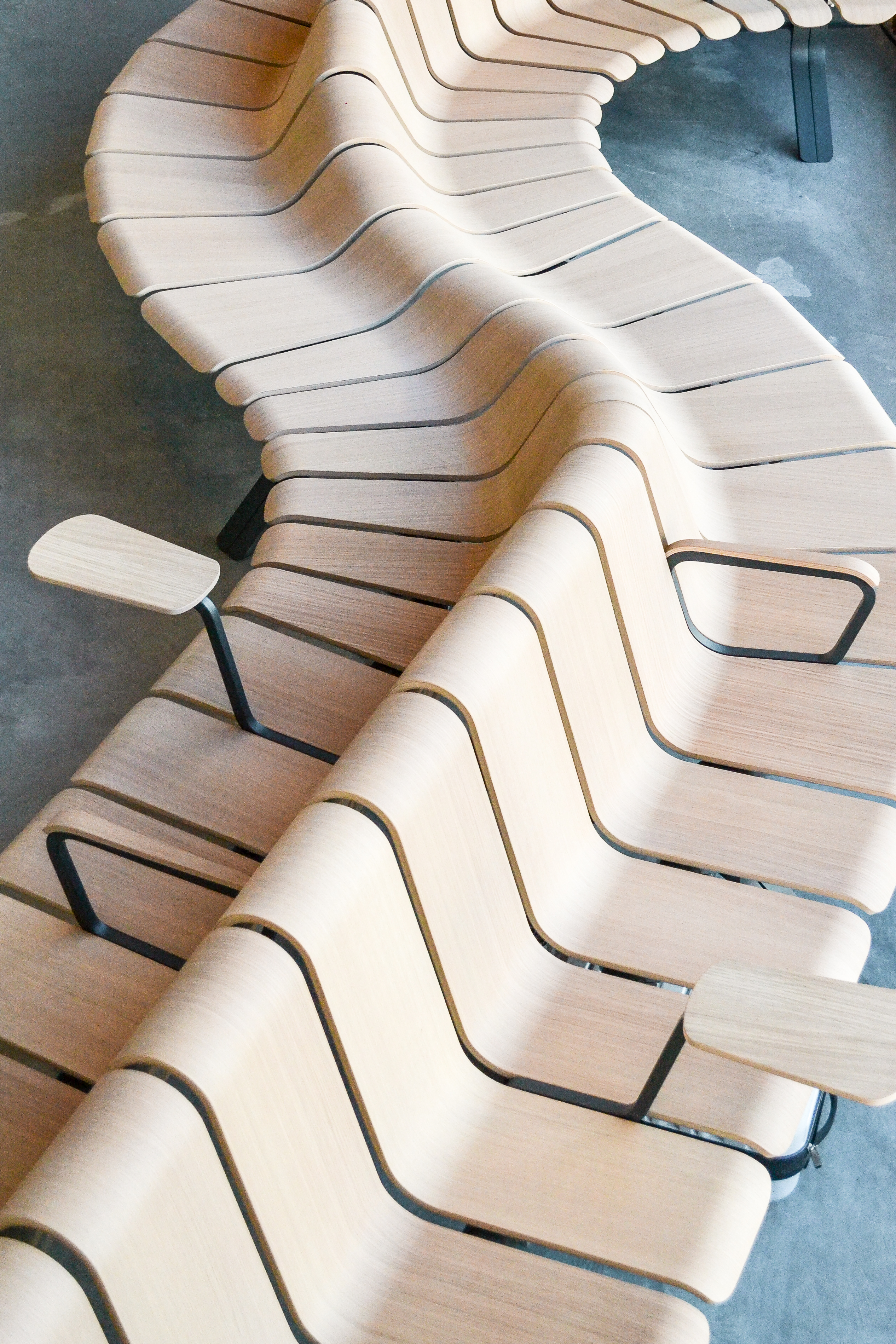 The in-house design team at Green Furniture Concept has designed sustainable and modular beam seating systems specifically for airport terminals and gates. Gently curved and three-dimensional, Ascent has been designed to be unique, placemaking and truly seamless. The softly contoured wood design with integrated tables and charging points creates an inviting and comfortable seating area that enhances passenger satisfaction.