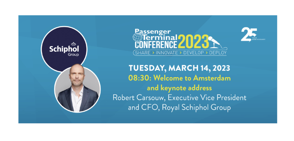 Passenger Terminal Expo is excited to announce that Robert Carsouw, executive vice president and CFO at Royal Schiphol Group, will make the opening address and keynote speech at Passenger Terminal Conference at 08:30 on Tuesday, March 14, 2023.
