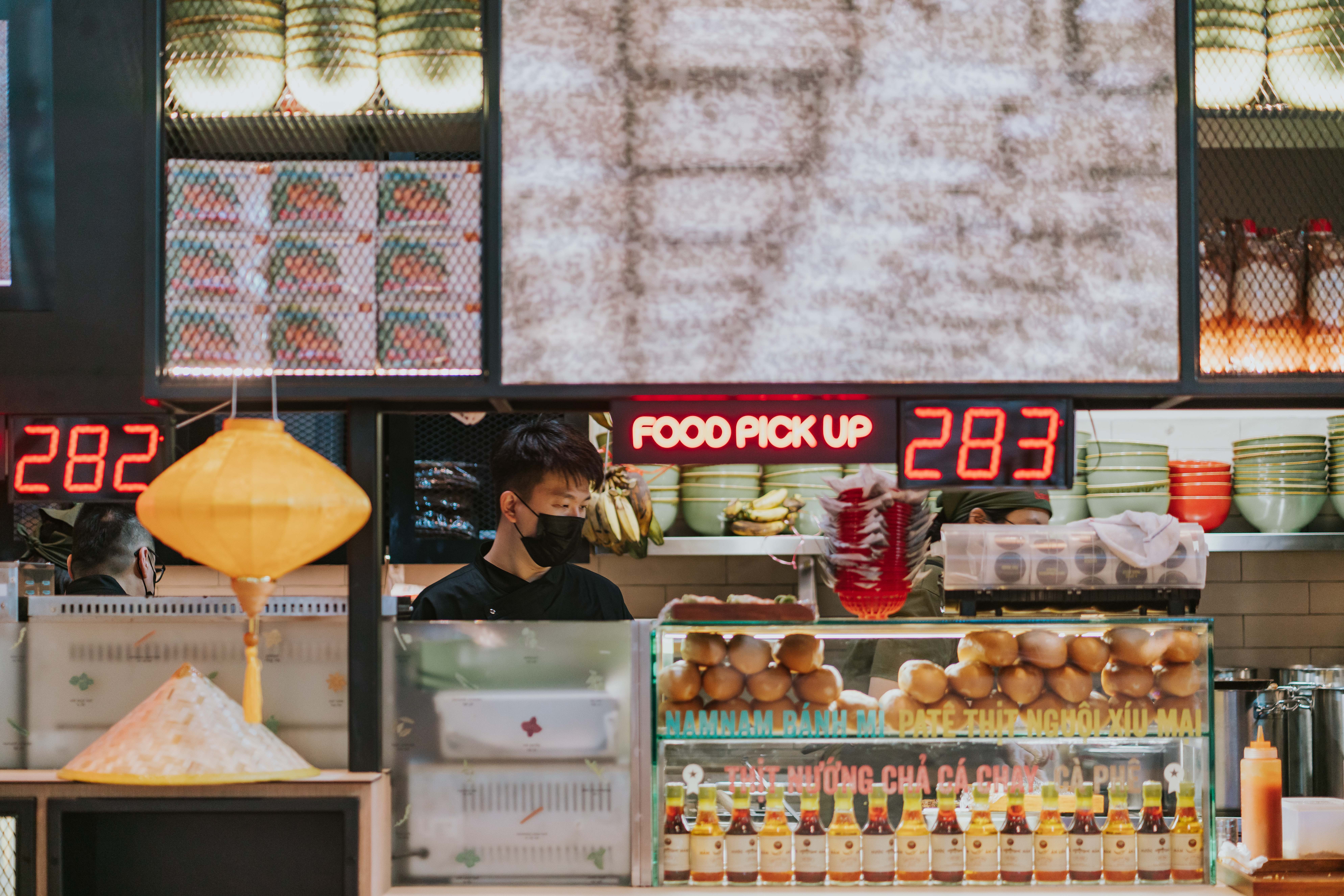 The format at NamNam is self-service, with defined pick-up zones for customers, as well as self-order kiosks and a digital queueing system. The outlet’s interior has been tailored for the airport environment with seating capacity for 82 guests at a time. High ceilings in tones of green have been incorporated to allude to the zinc roofs of Vietnamese architecture. The walls are adorned with words formed from fluorescent lighting to evoke the character of a night-time street food market. To bring customers closer to the kitchen and create a unique ‘entertainment’ showcase, the banh mi and pho cooking stations are open to diners, bringing the vibe of Vietnamese food culture straight to customers at Terminal 3.