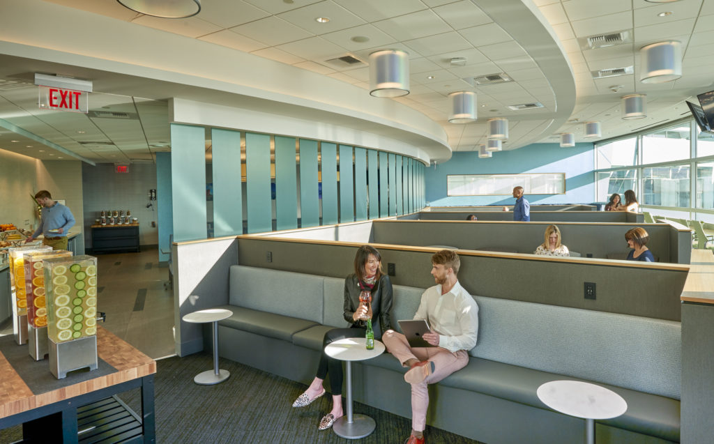 The 7,000ft2 (650m2) Club LAS is divided into five distinct zones for all visitors to enjoy. These spaces include a Productivity Zone, serving as a dedicated space for business travelers; a Relax Zone featuring comfortable seating and ample electrical outlets; a Resting Zone, featuring recliners and ottomans with convenient reading lamps and electrical outlets; and a Replenish Zone offering table and banquette seating for visitors to enjoy a selection of food and beverages from a hot and cold buffet. Finally, a Refresh Zone provides private restrooms and shower suites with spa-quality soaps and lotions.