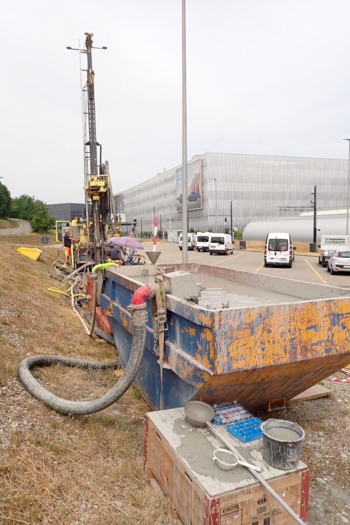 The team at Zürich Airport worked with IG Rinne, a consortium consisting of engineering consultants at Geo Explorers, Sieber Cassina & Partner and E-Axiom, to develop the multi-stage analysis process. The team started with seismic investigations. This enabled the channel depth, shape and rough layer structure to be mapped. Additional exploratory drilling at three locations confirmed the initial findings and provided promising additional information about the groove: it is up to 1km wide and around 30km long. The key factor, however, is its composition. The channel carries gravel and water and therefore fulfills the requirements for potential heat and cold storage. Excess heat from the summer can be stored in water-bearing gravel and taken out again for heating in the winter. In turn, the buildings can be cooled in the summer.