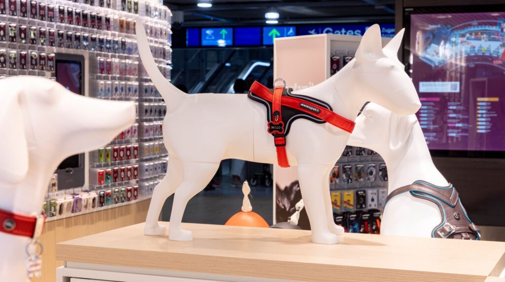 Düsseldorf Airport in Germany has opened a MyFamily pet accessory shop to offer lifestyle products for dog and cat owners such as personalized identification tags, collars, leashes and harnesses.