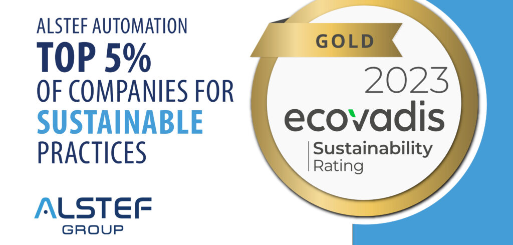 Ecovadis assesses companies’ performance in four key areas: environment; labor and human rights; ethics; and sustainable procurement. Ecovadis’s evaluation process encompasses an in-depth analysis of Alstef Automation’s policies, actions and performance related to sustainability. The gold certification recognizes Alstef Automation’s exemplary performance and places it in the top 5% of companies globally for corporate social responsibility (CSR) as rated by Ecovadis.